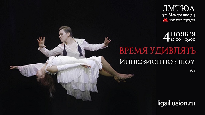 — Скидка 30% на билет на иллюзионное шоу «Время удивлять» (450 руб. + доплата 2700 руб. вместо 4500 руб.)